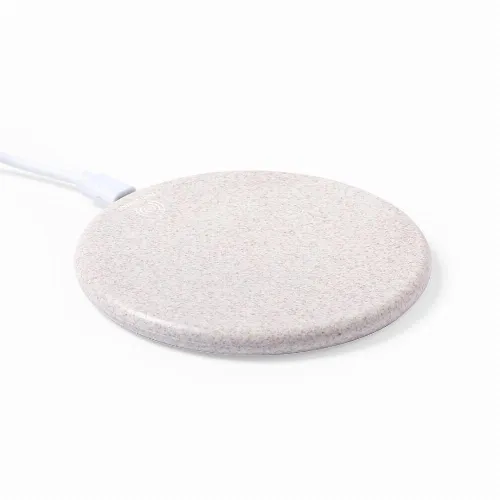 Wireless charger with a circular design made of wheat straw, in order to encourage the use of natural raw materials and reduce contaminant emissions.