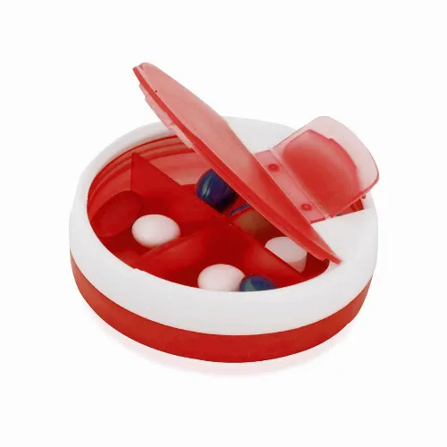 Original tablet dispenser in bicolor design with dispenser coverand 4 inside compartments.