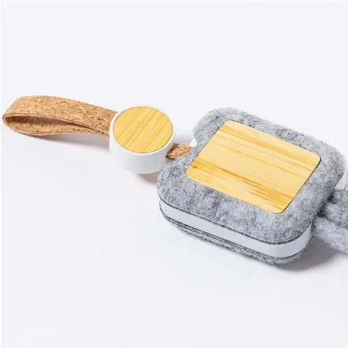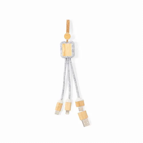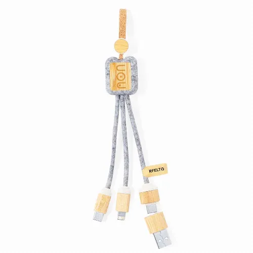 Charging cable made of bamboo and RPET felt.