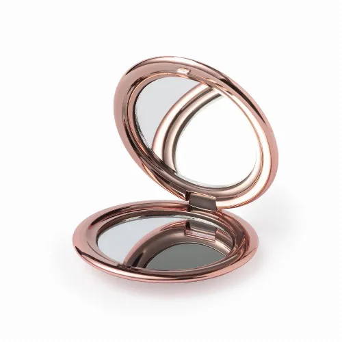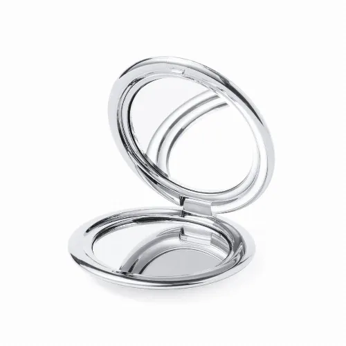 Folding mirror in elegant metallic finish.