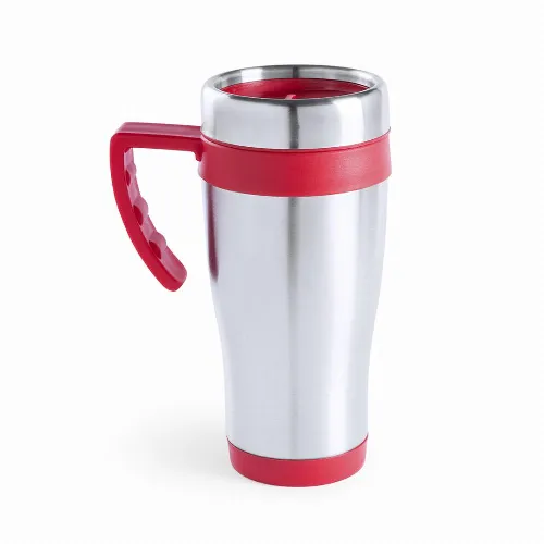 Tabletop mug made of stainless steel with a 450ml capacity and a glossy finish body with matching accessories in bright colors.