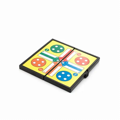 Folding table set with metal surface and magnetic counters.