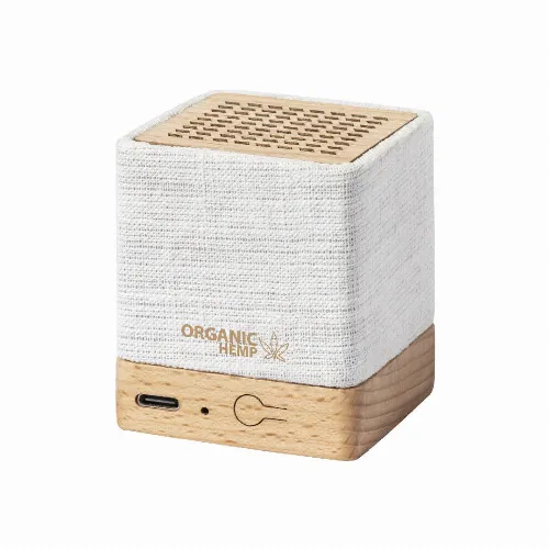 Bluetooth® speaker with case in a combination of organic hemp and natural wood.