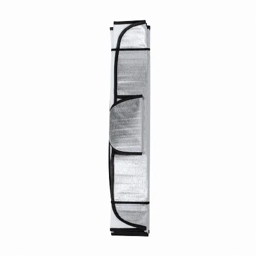 Durable single-sided Aluminium sunshade, designed to be positioned on the outside of the front window and as protection against adverse weather conditions like snow.