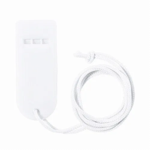Whistle with distinctive design and made of durable PS.