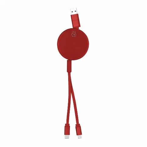 Extendable charger and synchroniser cable, suitable for data transfer and made of recycled aluminium with metallic finish.