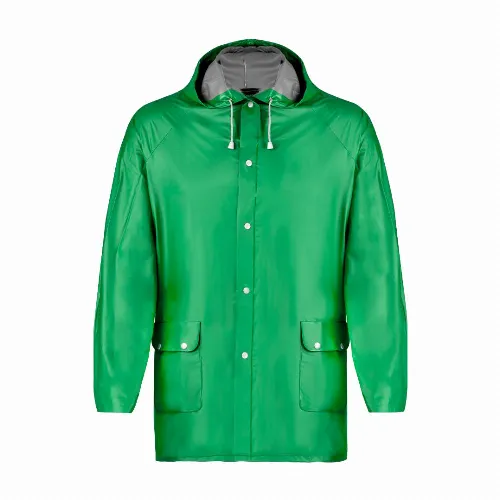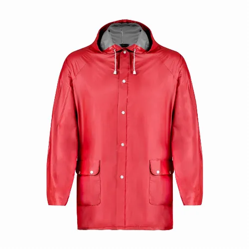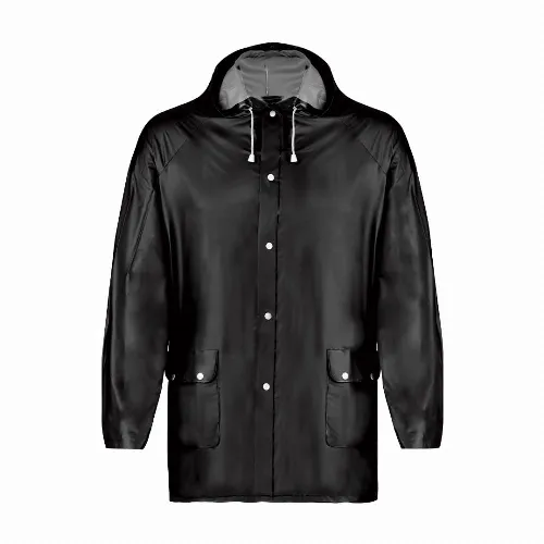 Raincoat in resistant PVC with heat-sealed finishing in a wide range of tones.