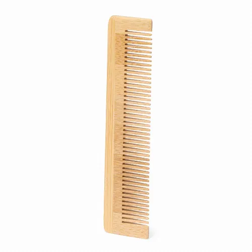 Comb made of polished bamboo with equal bristles.