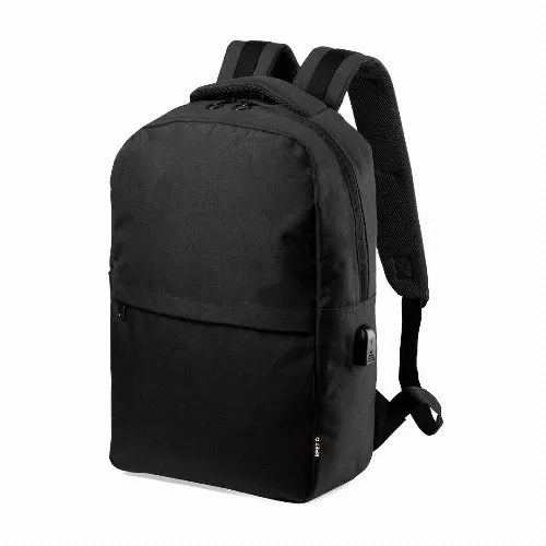 Business backpack in resistant 600D RPET material, obtained from recycled plastic materials, to encourage the reusing of plastic residues and contribute to the Earthâ??s sustainability.