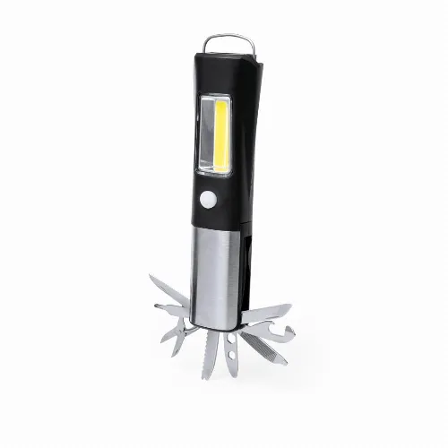 Practical multi-tool made of durable ABS and stainless steel, with integrated 1 LED headlamp.