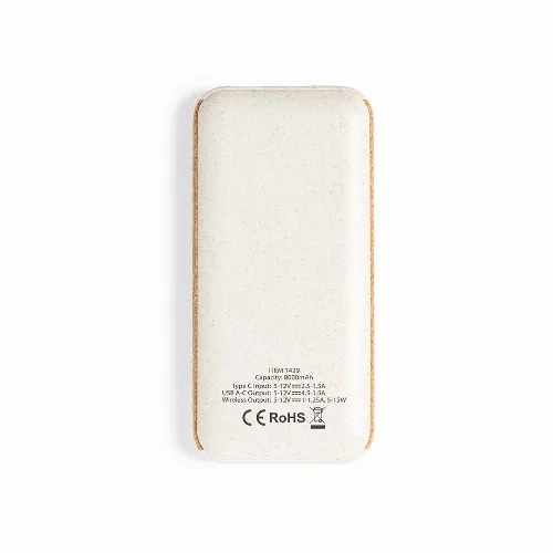 External auxiliary battery in nature line, made of a combination of natural cork and wheat straw.