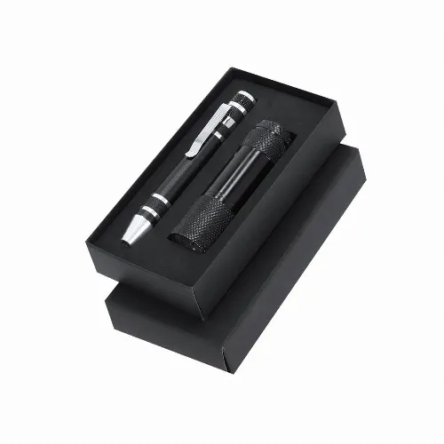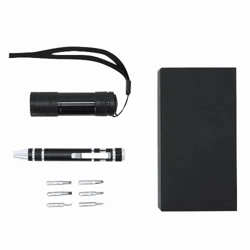 Multifunctional Tool Set with Flashlight and Aluminum Screwdriver.