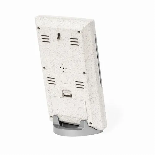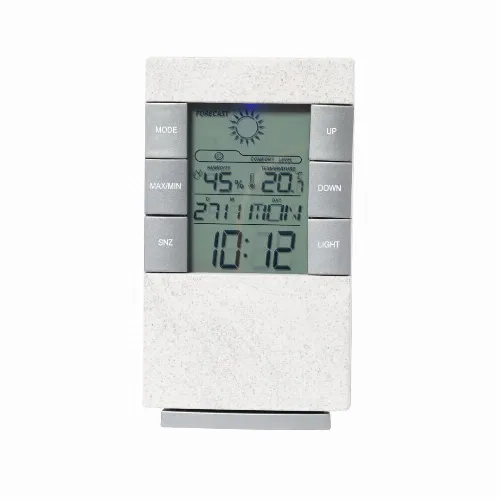 Weather station made of wheat straw, with thermometer and hygrometer.