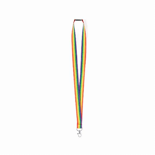 Multicoloured Rainbow lanyard, made in soft polyester.