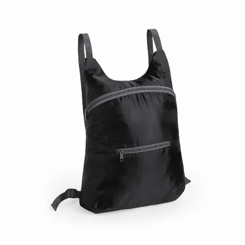 Folding backpack in soft polyester 201D in bright tones, with zipper closure, front pocket and headphones output.