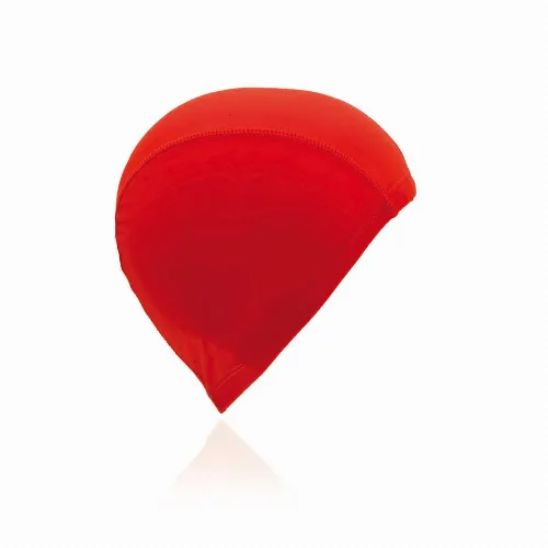 Swimming pool cap in brightly colored spandex material for a solid and soft fit on the head.
