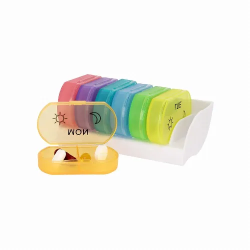 Weekly pill organizer made of durable PP.