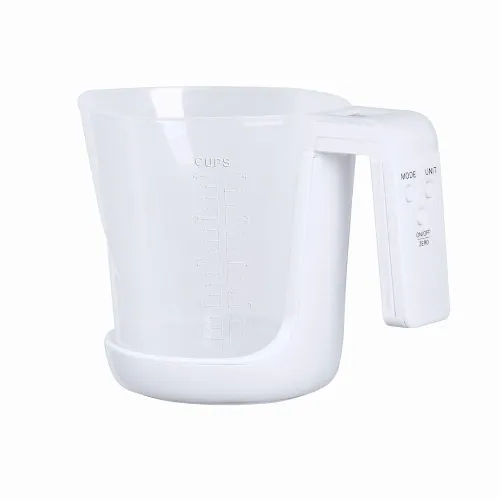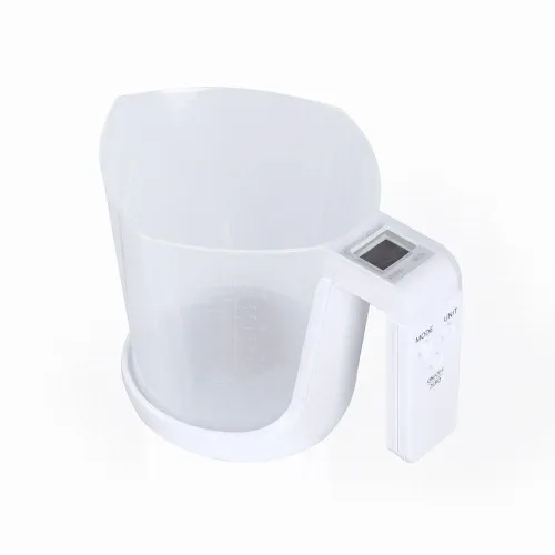 Báscula con jarra medidora integrada, fabricada en resistente combinación de PP y ABS.