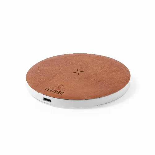 15W wireless charger, made in a combination of RABS and recycled leather.