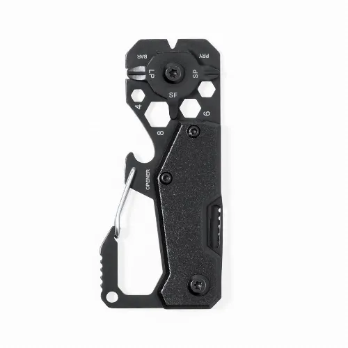 Superb multi-tool made of Aluminium and stainless steel with black finish.