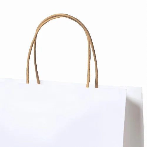 Nature line bag, made of 100g/m2 recycled paper in white finish, with short reinforced handles in natural colour and gusset.