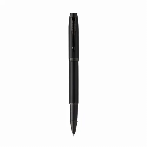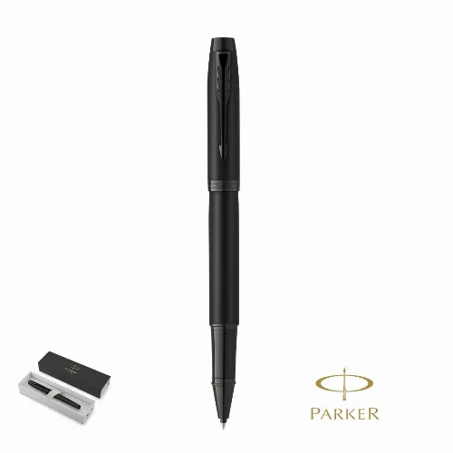 Roller Parker IM Achromatic, made of stainless steel with a matte black lacquered finish and black ink.