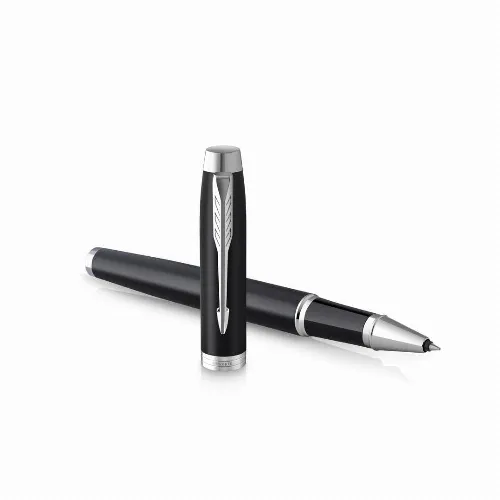 Parker roller pen IM Essential, in matte black lacquered metal barrel and cap with chrome-plated trims.