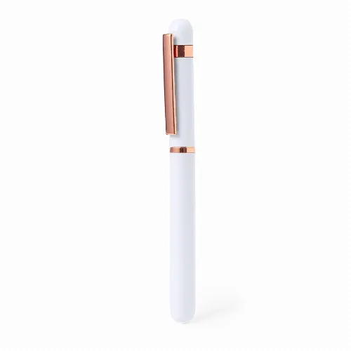 Elegant roller ball pen specially designed for laser marking with rose-coloured logo.