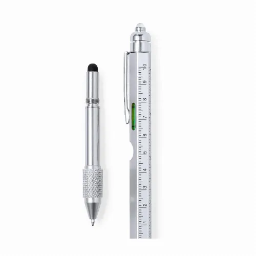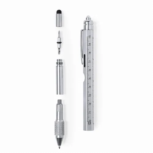Multifunctional 8-in-1 ball pen with twist mechanism, made in stainless steel.
