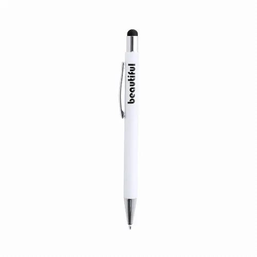 Pointer ball pen with push-up mechanism and body in an elegant, aluminum, matt white color design.